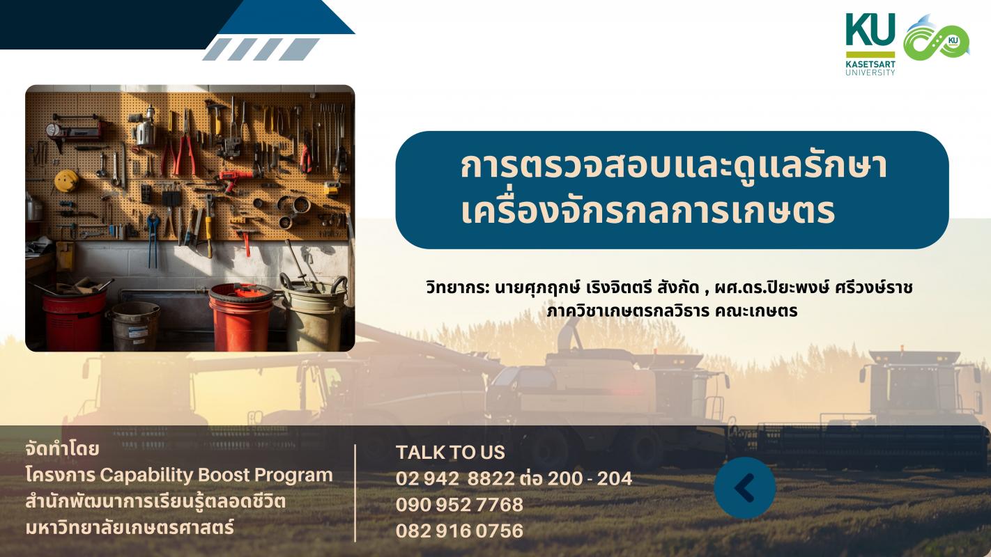 ตรวจสอบรายชื่อวิชา: การตรวจสอบและดูแลรักษาเครื่องจักรกลการเกษตร