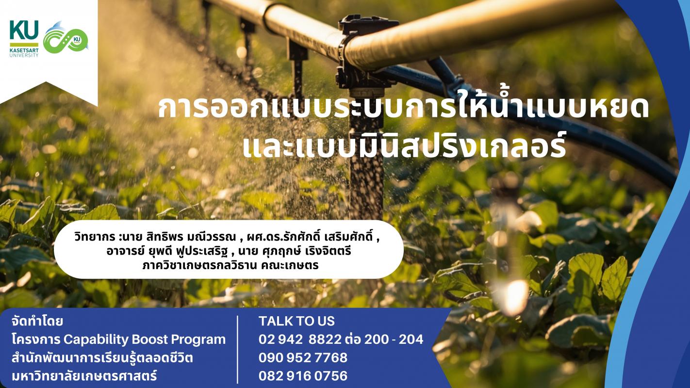 ตรวจสอบรายชื่อวิชา: การออกแบบระบบการให้น้ำแบบหยดและแบบมินิสปริงเกลอร์